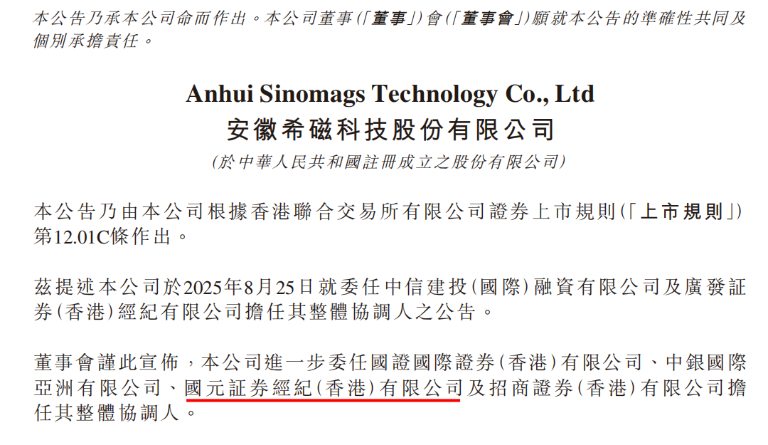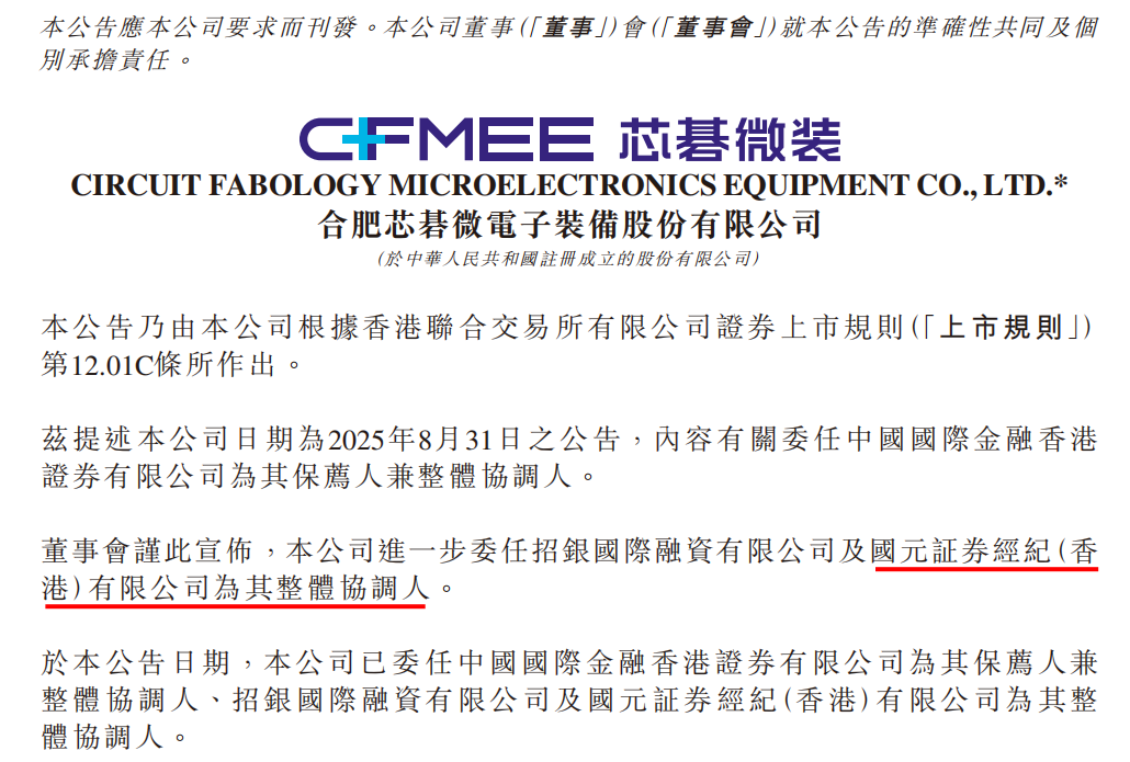 本次獲聘芯碁微裝、希磁科技港股IPO專案整體協調人,是國元國際在科技行業企業融資業務的重要進展,再次證明了國元國際在香港資本市場的優秀業績。2025年以來國元國際充分聚焦科技、消費、醫療三大熱門賽道,先後助力海螺材料、維昇藥業、綠茶集團、訊眾通信等企業成功發行上市,保薦金岩高新、溜溜果園、景澤生物等專案順利向聯交所遞交上市申請表。經公開資料統計,今年以來安徽省港股遞表企業共計11家,其中國元國際擔任保薦人3家,擔任整體協調人3家,所服務安徽港股IPO企業占同期赴港上市皖企家數逾50%。